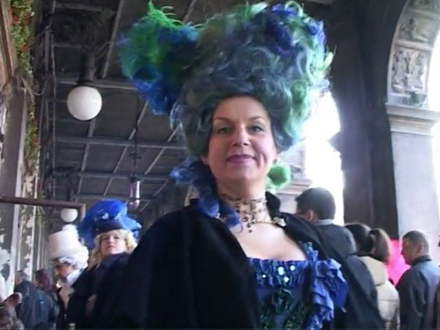 Da qualche decennio Karin riempie la valigia di fantasiosi costumi di sua creazione e prende il treno per Venezia. Dopo aver indossato una delle sue meravigliose creazioni si trasforma da bancaria tedesca in nobildonna veneziana del XVIII secolo, si esibisce in autentici palazzi veneziani e, passeggiando per le vie di Venezia, entra in un’altra dimensione e condurrà lo spettatore attraverso il suo Carnevale.